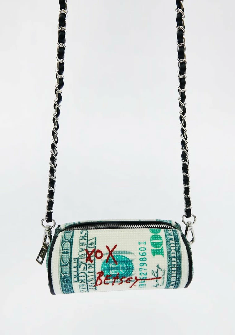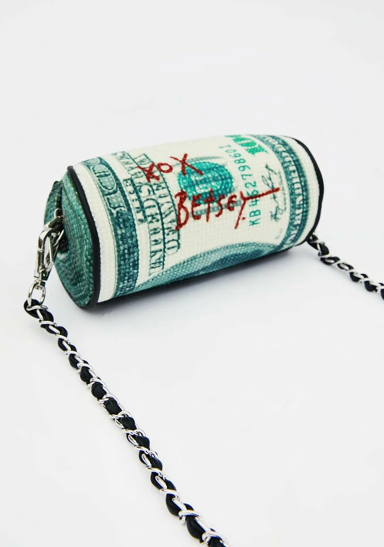 cuz ya luv a big spender, bb! YouΓ’ΒΒre callinΓ’ΒΒ all daddyz with this cha-ching crossbody bag that has a bank roll cylindrical design with a supa sweet Betsey signature, adjustable strap and top zip closure.