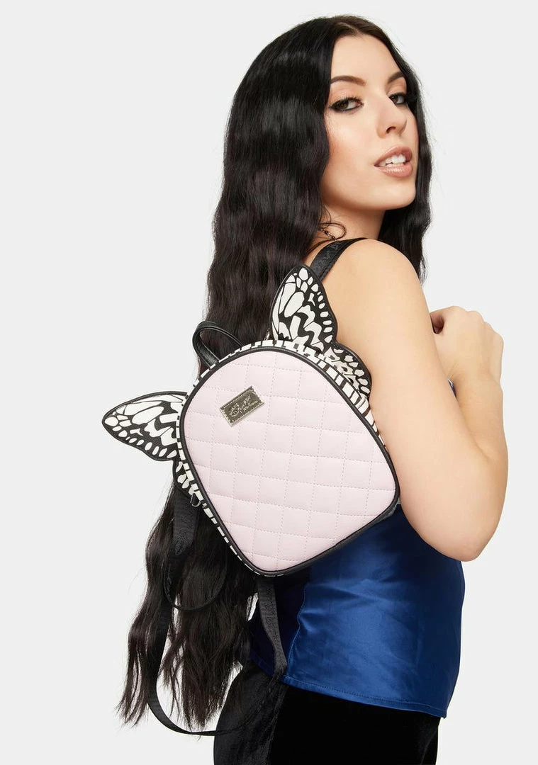 cuz youΓ’ΒΒre flying away! This quilted vegan leather mini backpack has a butterfly wings design, a top zip closure and adjustable shoulder straps.