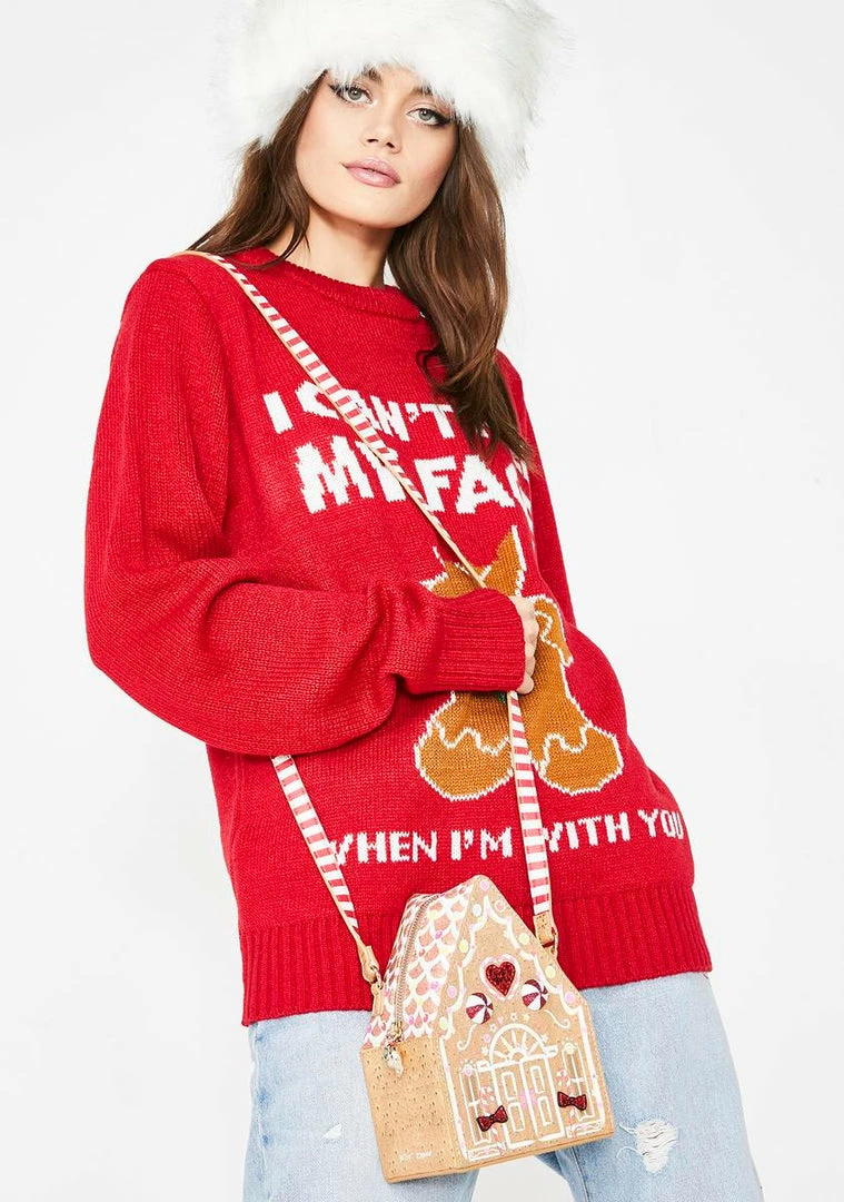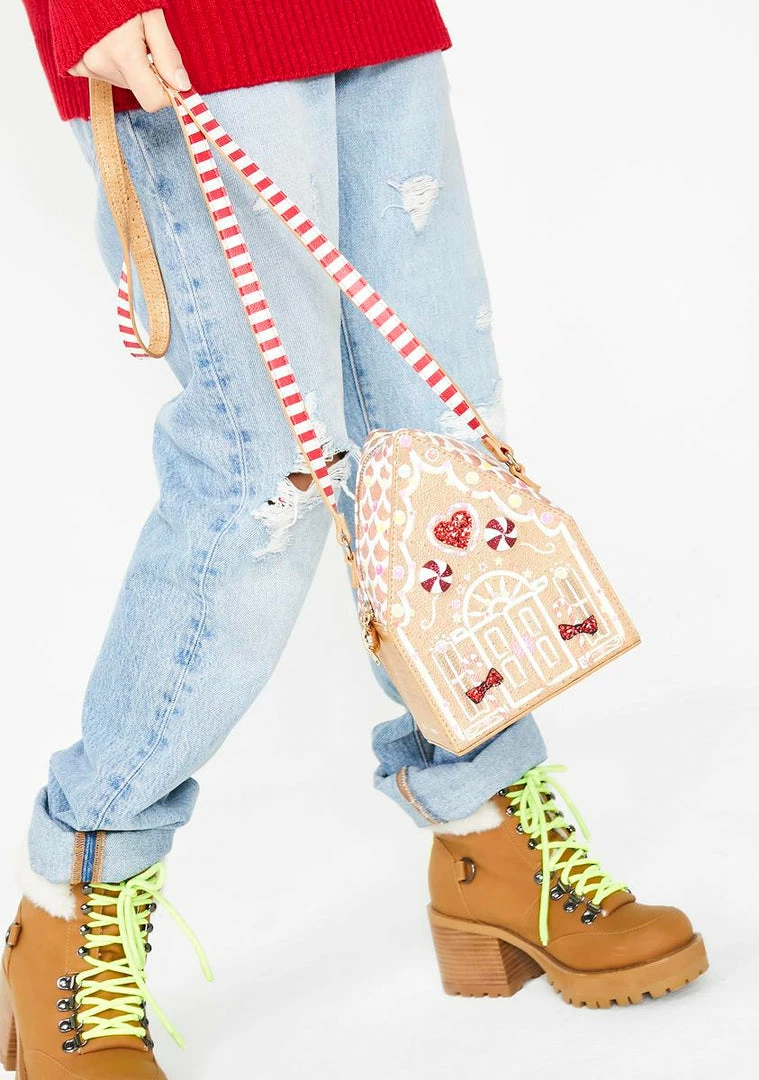 cuz youΓ’ΒΒre sweeter than a gumdrop button babe! Stay merry this litmas with this cute AF gingerbread bag that is complete with faux candy all ova, a candy cane striped shoulder strap NΓ’ΒΒ a top zip closure.