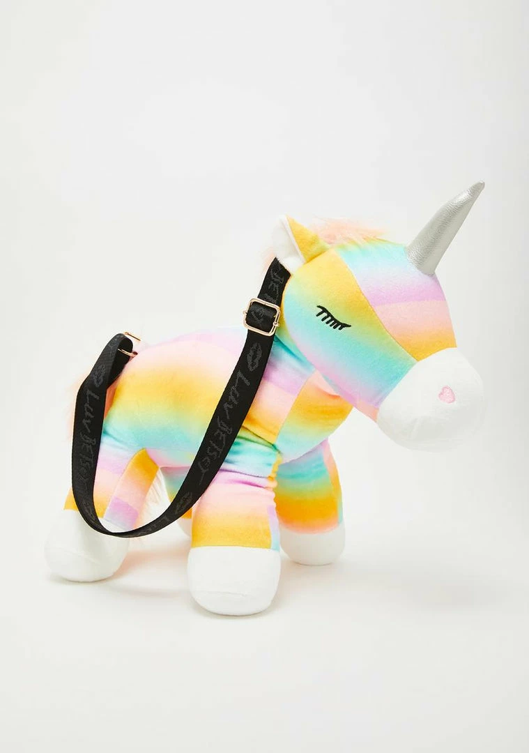 got ya livinΓ’ΒΒ a euphoric dream, bb! Fantasy meets reality in this cute AF plush crossbody bag that has a supa sweet rainbow unicorn construction, an adjustable shoulder strap NΓ’ΒΒ top zip closure.