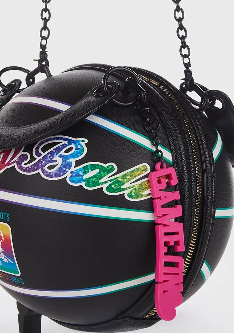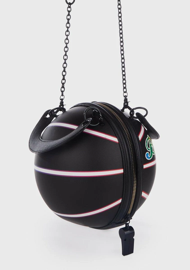what are we playing for? This bag comes in a vegan leather basketball construction, with contrasting details, top handles, a crossbody strap, and zip closure.