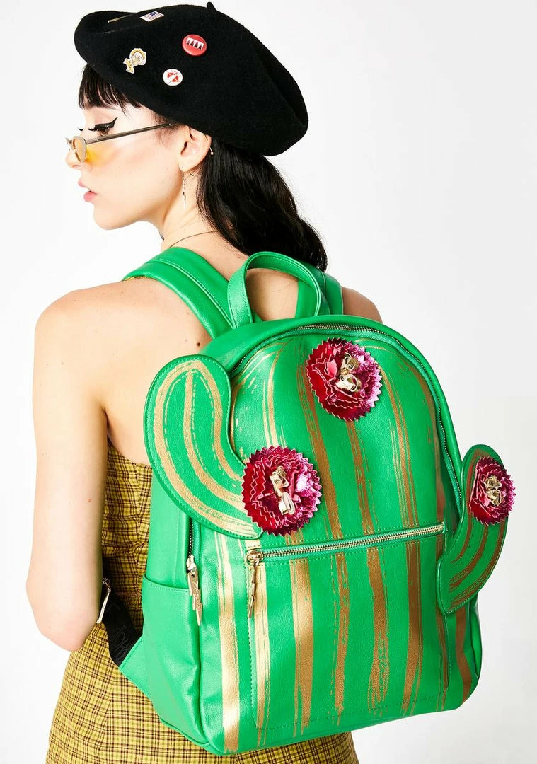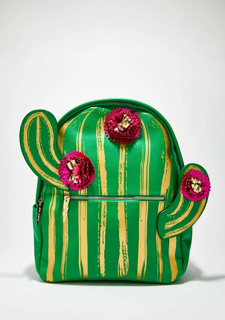 cuz ya straight to the point! Prick Γ’ΒΒem a bit in this cute AF cactus backpack that has a poppinΓ’ΒΒ flower detail, zip closures with gold-tone hardware, and lime shoulder straps.