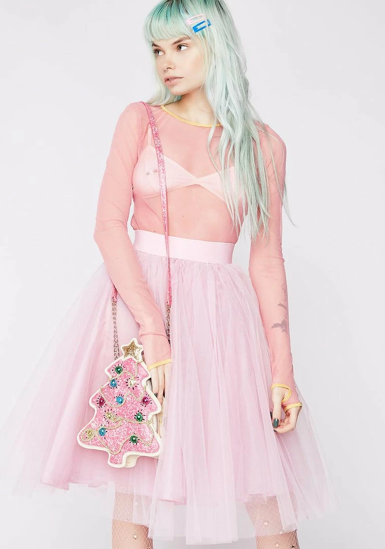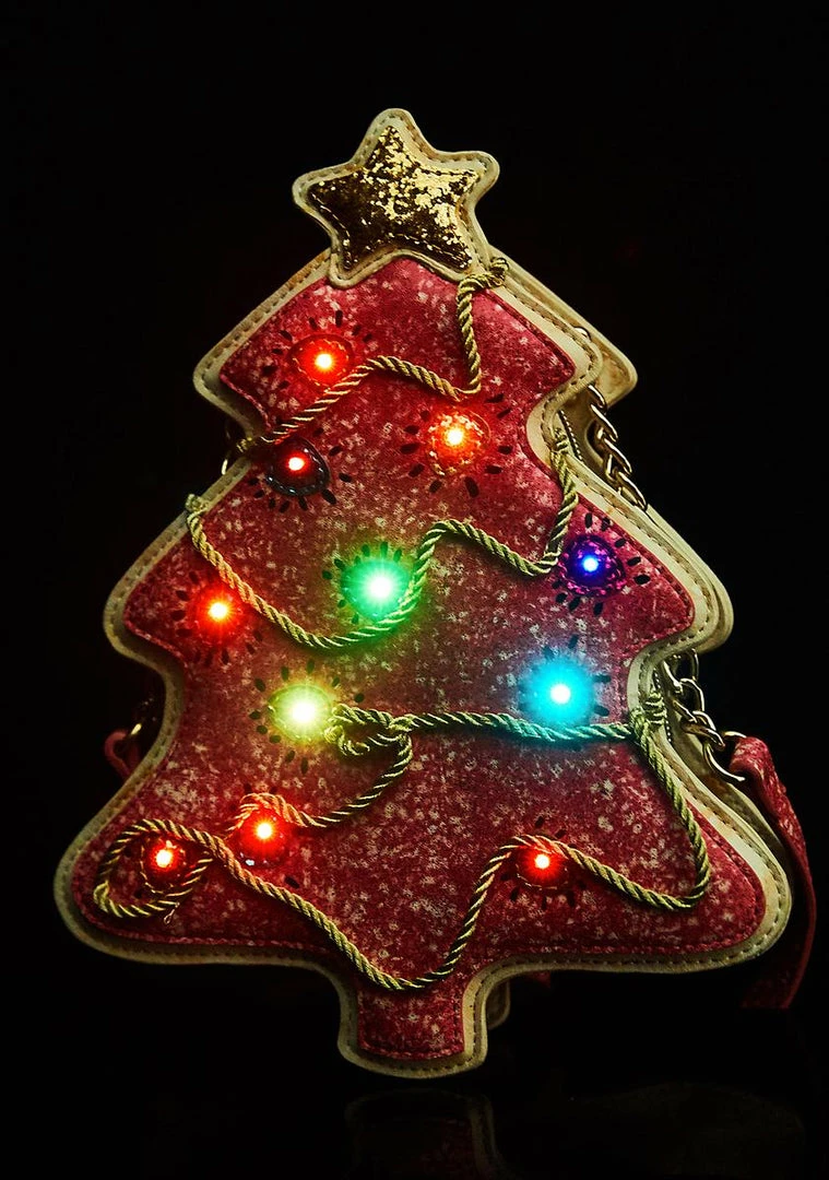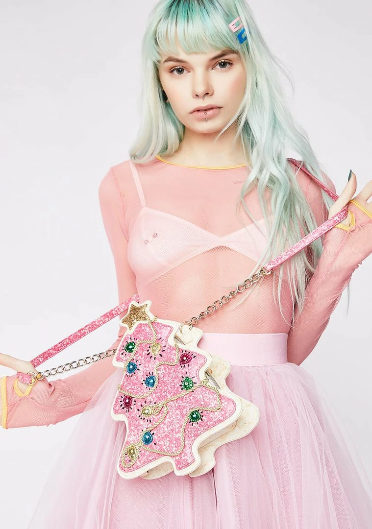 cuz youรขยยll never see this in the cookie jar. This tree shaped cookie inspired bag has glitter all ova, embroidered light accents and a zip closure.