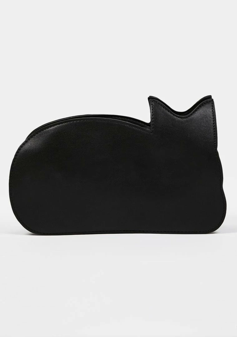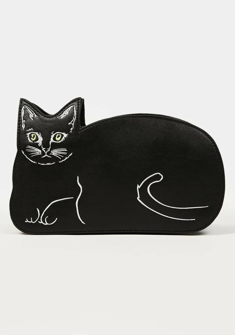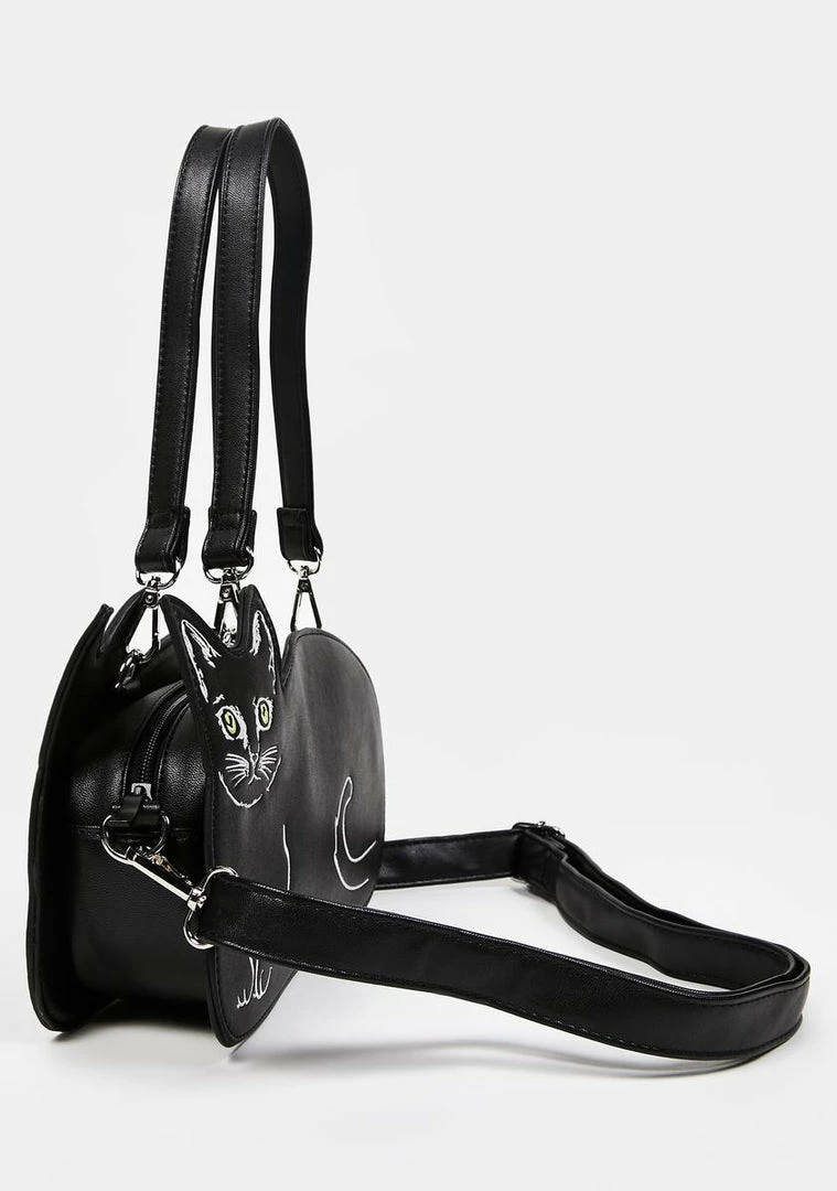 cuz youΓ’ΒΒre not here to bring bag luck. This handbag has a vegan leather construction with embroidered cat graphics, a top zip closure, and a detachable shoulder strap.