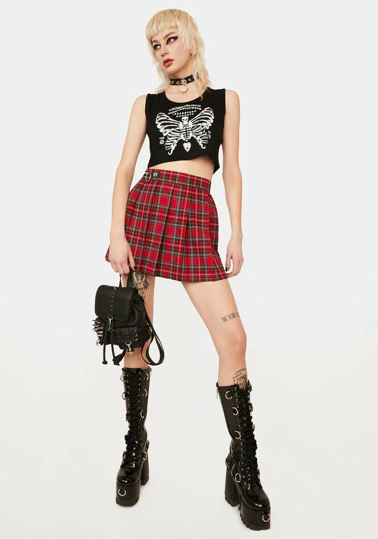 you’re one of a kind. This tank top has a scoop neckline, a skeletal butterfly and ouija board graphic print, and a cropped hem.