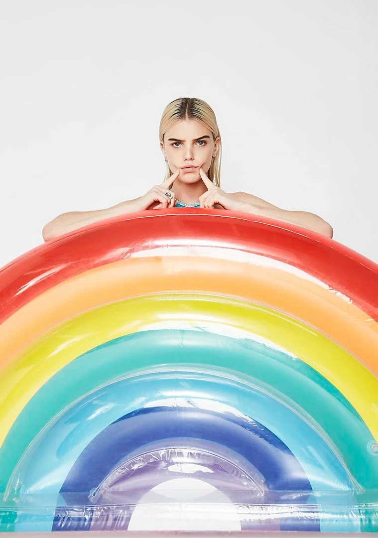 cuz you up in the clouds. Sunbathe on this sikk pool float that is shaped as a rainbow and will have you feeling happy in the skies.