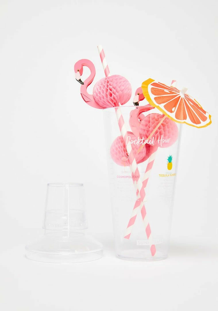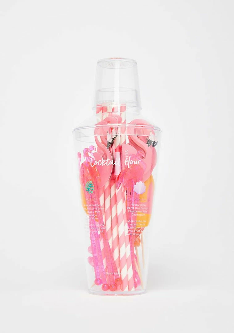 cuz happy hour is every hour! Shake up summer with this supa cute flamingo cocktail party kit that comes with a shaker, coasters, cocktail umbrellas, straws, stirrers, N’ ice cubes.