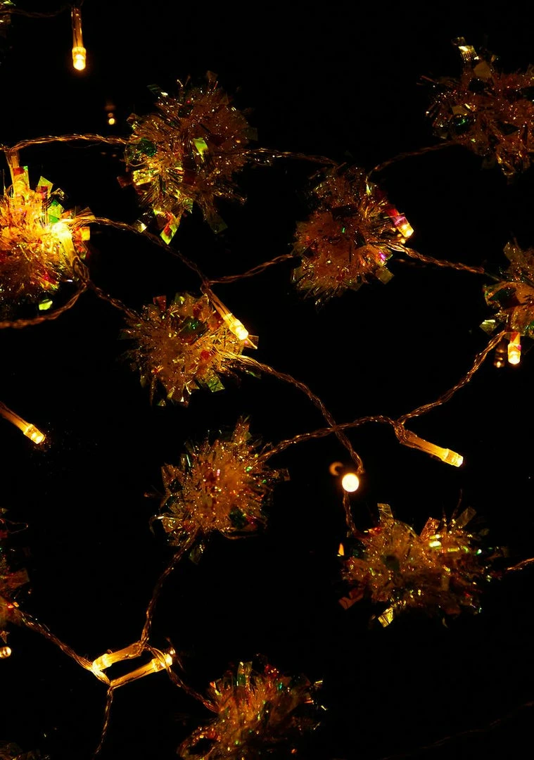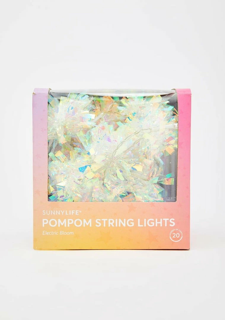 fer settinâ tha mood, bb! Make sure they always see you glowinâ after hanging up these iridescent string lights with clear holographic confetti poms hanging along them.
