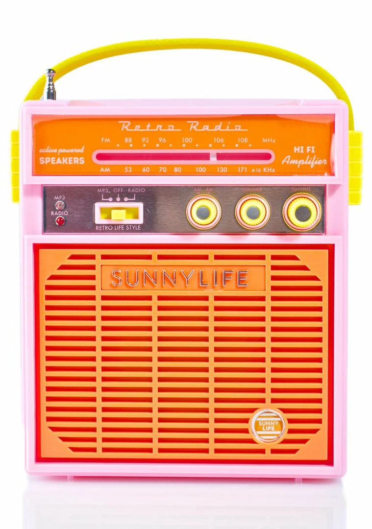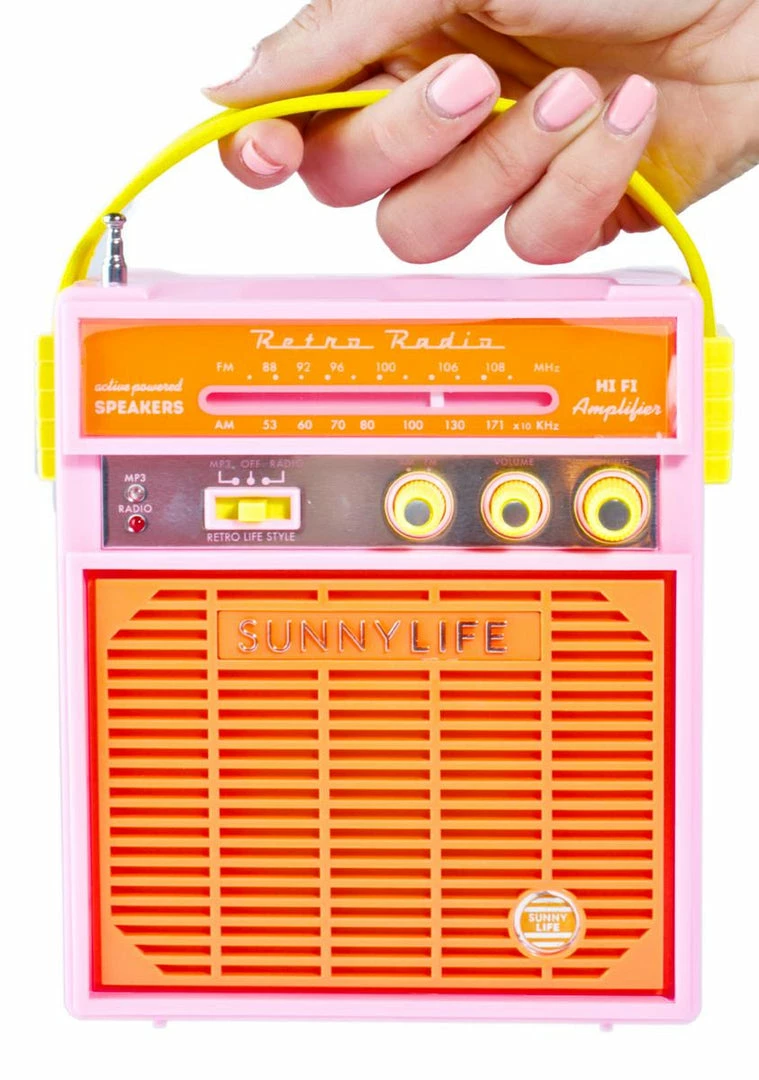 is sweet รขยยN tangy, bb! The sunรขยยs out, so go have a picnic รขยยn listening party with this adorable retro inspired portable speaker, featuring an AM/FM tuner and antenna, carrying strap, and a 3.5mm jack to curate yer own playlist.