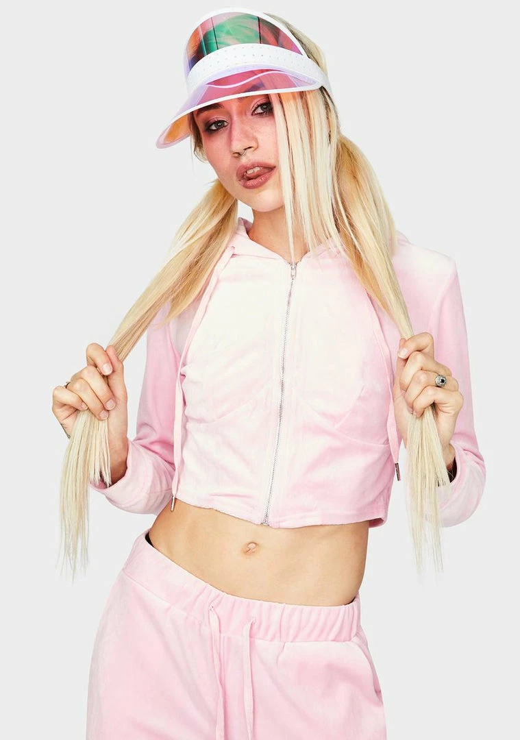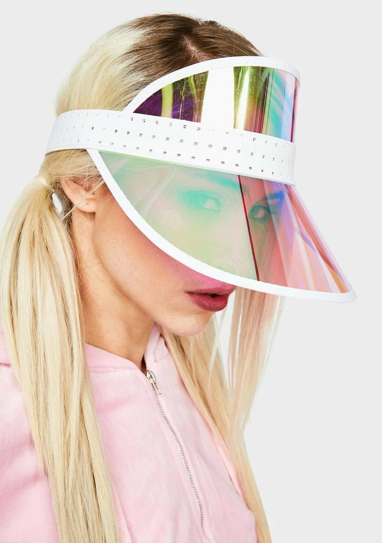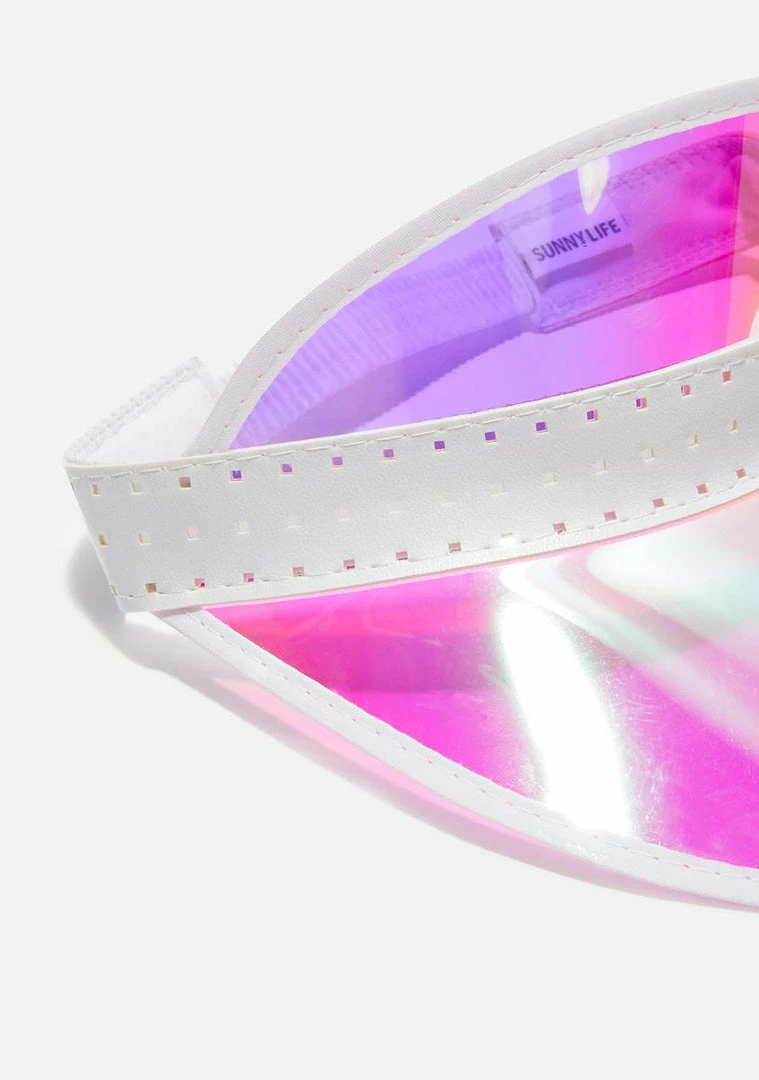 this summerΓ’ΒΒs one to remember. This iridescent sun visor has an adjustable back closure and long rounded front visor panel.